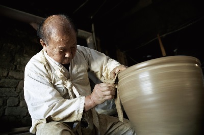 기여(맞아). 일단 손으로 만드는 도공이 없어. 예전에는 수없이 많은도공이 있었는데 지금은 전국에 수작업하는 도공이 50명이 안 돼.그마저도 나이가 얼추 80줄에 든 사람들이여. 부족한 일손으로는주문받은 수량을 맞추지 못혀. 그래서 우리도 대량생산 쪽으로 연구를 하고 있어. 그 대안이 석고틀 제작이여. 이것도 기술이 있어야혀.석고틀에 흙을 붙일 때 압력을 어느 정도 줘야 수작업의 타래질 한것과 같이 야무지게 되는지 등 그런 기술을 전수자들에게 알려주고있지. 대신 장작불로 번조할 때 나는 연기가 환경문제에 큰 걸림돌이되지 않는다면 장작가마만큼은 고수할 생각이여.