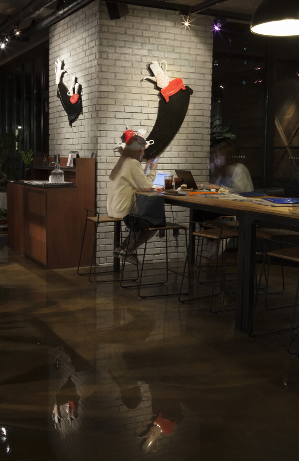 주고, 드웰 디 카페의 새로운 감성이 깃든 장소를 제공 하고 싶다”고 전했다. 벽면에는 가구와 같은 요소를 배 치해 쇼규모 전시를 위한 공간을 연출하며 작은 공간 에서도 특별함을 선사한다.