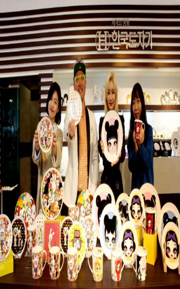 한국도자기와 마리킴·아트놈 작가와 아트콜라보 켈렉션을 출시 했다. 한국도자기는 3월 15일 오전 서울 동대문구 한국도자기 서 울 사옥에서 이번 신제품을 전시하고 작가들과 함께 직접 제품을 홍보하는 행사를 진행했다. 마리킴의 신제품은 「아이돌Eyedol」이 라는 커다란 눈을 지닌 소녀들의 얼굴을 한국도자기 접시와 머그 제품에 그려 넣었다. 또한 팝아티스트 아트놈은 자신을 형상화한 아저씨 캐릭터 ‘아트놈’, 토끼 소녀 ‘가지’, 말썽꾸러기 천방지축 강 아지 ‘모타루’등 시그니쳐 캐릭터를 개성 있는 배경 위에 표현했 다. 한국도자기는 국내 신진 작가들과 아트콜라보 컬렉션을 꾸준 히 발표해왔다. 한국도자기 관계자는 “키덜트Kidult 문화가 확산되 면서 테이블웨어 시장에서도 친숙한 캐릭터와 감각적인 아트콜 라보 제품들이 다양한 연령대로부터 인기를 얻고 있다”며 “아트콜 라보 상품은 밋밋한 테이블에 포인트 식기로 사용하거나 그 자체 로 하나의 훌륭한 홈데코 아이템이 될 수 있다”고 전했다.