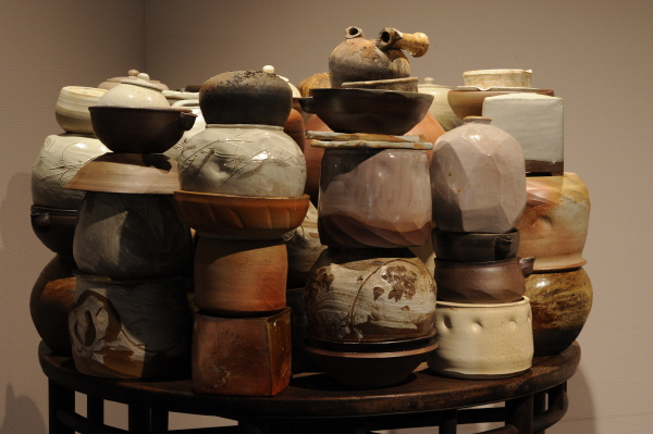 이 그릇들은 홀로 있을 때 고유의 아름다움을 뽐내기도 하지만, 그의 손을 통해 만들어지고 쌓여진 후에는 서로가 의지하여 하나의 성벽을 이루고 또 다른 조형의 형상으로 그 힘과 아름다움을 보여준다. 기물 하나하나의 역할에서 나아가 기물끼리 서로 의지함으로써 또 다른 모습을 재구성하는 것이다.