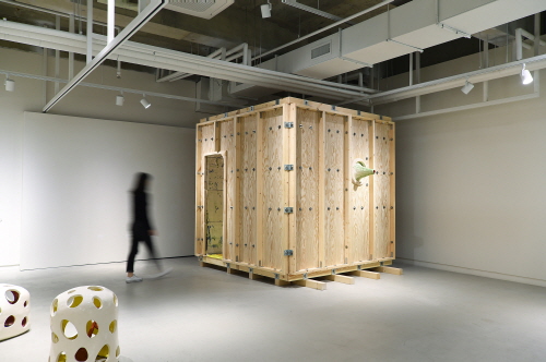 「공예가의 방 혹은 건축가의 그릇」 Glazed ceramic, wood, glass, 260×260×270cm, 2018