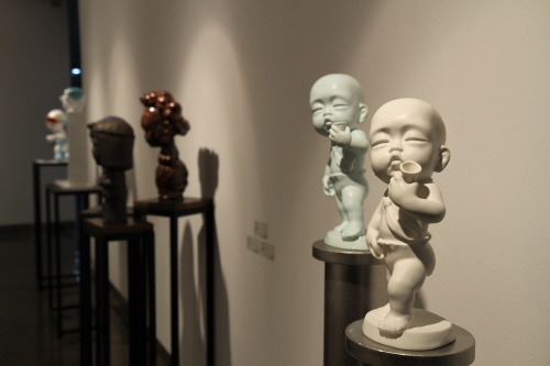 송민선 작가의 개인전 〈어른들의“데칼코마니”〉가 지난 9월 27일부터 10월 27일까지 한 달간 충무로역내에 위치한 오!재미동 갤러리에서 열렸다. 이번 전시는 조각가 송민선이 처음 시도한 도자작품들로 선보여졌다. 어른들의 세상을 아기의 형상으로 구현해낸 작가의 작품들은 무거워 보일 수 있는 어른들의 모습을 연극적인 재현을 바탕으로, 아기가 가진 귀엽고 천진난만한 모습을 표현했다. 작가는 자신의 작업에 대해 “어쩌면 어린아이에 머물고 싶어 하는, 아이와 어른사이에서 갈팡질팡하는 나의 모습이기도 하다.”고 전했다. 전시장에는 「해탈해버렸어!」, 「피로야 가라~!」, 「여유한잔」 등 유쾌한 작품명과 높은 완성도를 자랑하며 사람들의 눈길을 사로잡았다.