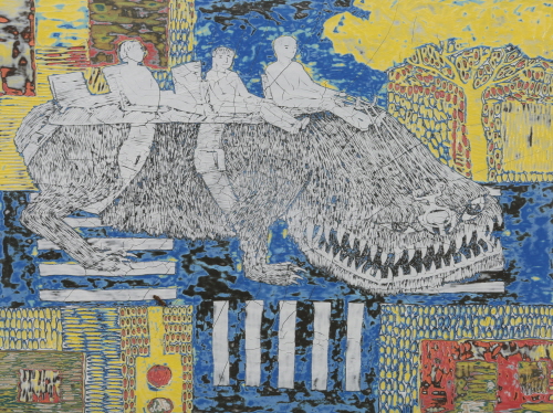 박정근은 현대에 만들어진 많은 사물들을 유심이 들여다보고 그것이 변화시키는 삶의 모습을 작품으로 제작한다. 이번 전시의 주제 ‘길들인 괴물’은 자동차다. 사람이 할 수 없었던 많은 일을 가능하게 만들었지만 그만큼의 위험 또한 가지고 있는 사물로 묘사된다. 작품에서 자동차는 살아 움직이는 형상으로 묘사된 반면 인간은 경직된 모습으로 그려냈다.