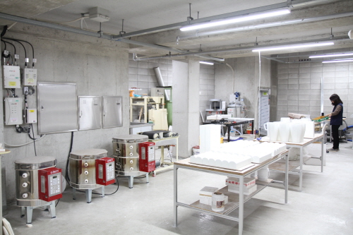 센터 외부에서 바라보면 건물 1층에 전면이 유리로 된 ‘갤러리’가 보인다. 갤러리에서는 입주작가들의 작품들을 선보인다. 가마실은 가스가마, 전기가마, 전기환원가마 여덟 대가 비치됐다. 가마실 외부에는 안성만 대표가 직접 개조한 ‘승염식 가마’가 있다. 이 가마는 번조 시 내부에 공기를 주입해 가마내부의 열기를 순환시켜 백자 기물이 그을림 없이 깨끗하게 번조되는 장점이 있다. 공작실은 평소에는 쉽게 접하기 어려운 다양한 장비들이 들어서있다. ‘CNCComputer Numerical Control조각기’는 석고 자체를 깎아내어 석고원형 뿐만 아니라 몰드를 바로 제작할 수 있는 기계로 크기별로 3대가 구비되어 있다. ‘분말 3D프린터’는 기계에 입력된 디자인을 흙가루와 접착액을 교차시켜 적층하는 방법으로 기물을 완성시킨다. 백자, 청자, 안료를 섞은 색소지분말 등 가루화된 모든 소지들을 이용해 출력가능하며 총 2대가 마련됐다. 또한 입력 값에 따라 3D프린팅, 성형, 시유 등 다용도로 일손이 되어주는 ‘다관절 로봇팔’등 총 6개의 최신 설비들이 들어서 있다. 아마 국내에서 가장 많은 기계를 보유한 레지던시가 아닐까 싶다. 핸드빌딩, 성형, 물레작업을 하는 ‘메이킹 몰드실’과 석고작업에 유용한 캐스팅 시스템이 마련된 ‘석고작업공간’에는 개인작업공간이 나눠져 있다. 작가들은 각자 작업하는 성형기법에 따라 자리를 선택할 수 있다.