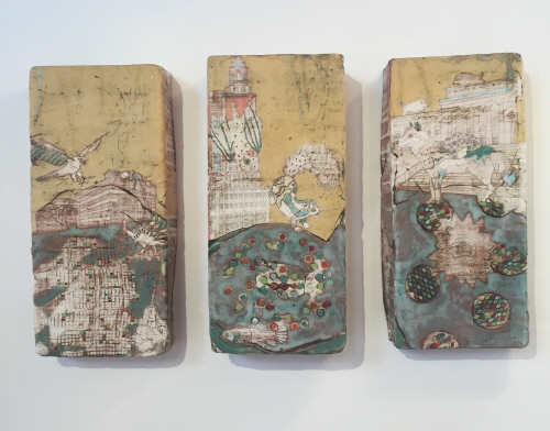 쉐나 프리겔은 어렸을 때 집에서 기르던 애완 동물에 대한 기억, 동화 속의 이야기들 그리고 작업실의 라디오나 인터넷에서 흘러 나오는 이야기들을 기의 표면, 손잡이, 굽, 바닥 등에 마치 조각보를 이어 붙이듯 그림을 새긴다. 건물, 공룡, 가구, 우주선 등 서로 연결되지 않는 듯한 그림들은 그것을 보는 사람들로 하여금 자연스럽게 여러 오브제들을 연결해 상상을 하도록 한다. “나는 드로잉과 점토의 결합을 통해 이야기를 전달하고자 한다. 나에게 도자 표면은 이야기를 펼칠 수 있는 공간이다.”