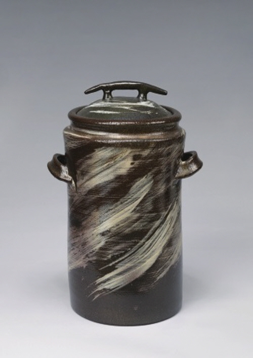 └배연식 작 「푸레 귀얄 분장 통병 단지」 37.5x30x22cm│황토, 백토, 천일염, 연기 │2011
