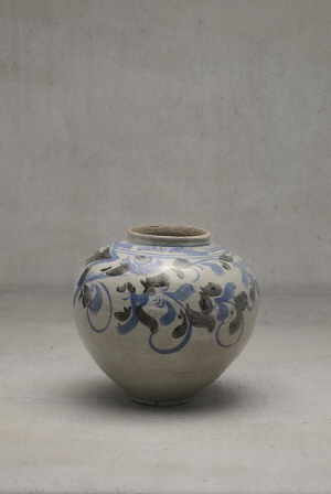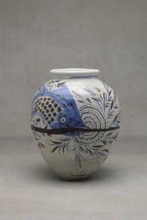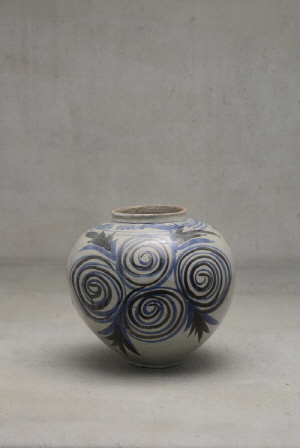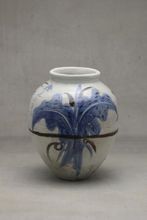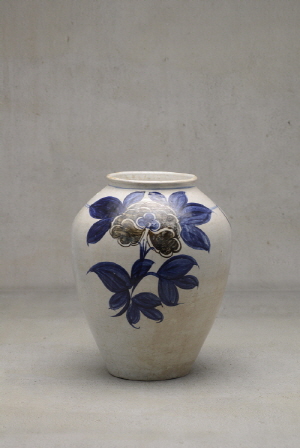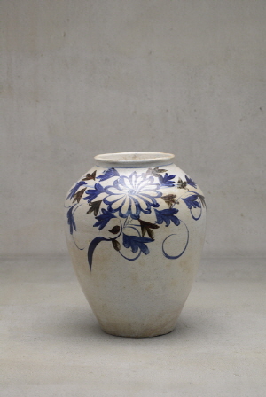 항아리의 모양이 단단하고 야무지게 생겼다. 힘찬 붓놀림으로 앞면과 뒷면에 국화꽃과 모란꽃을 거침없이 그렸다. 특히 모란꽃의 꽃잎을 완전히 추상화시켜서 회오리처럼 그려서 생동감을 나타낸 것은 아주 대단하다고 할 수 있다.