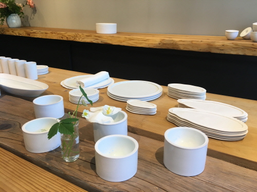 고희숙 도예가의 〈고희숙의 백자 운치절정, 백자절정〉전이 지난 4월 24일부터 5월 8일까지 16일간 노영희의 그릇에서 열렸다. 이번 전시는 ‘운치절정, 백자절정’을 주제로, 물레와 캐스팅기법으로 제작한 백자식기 및 오브제를 선보였다. 작가는 물레성형 시 나타나는 손자국, 몰드성형 시 절단부분을 다듬지 않은 독특한 외곽처리 등 제작과정에서 나오는 자연스러운 효과를 응용해 작업한다. 오픈 당일 노영희 요리연구가가 작가의 그릇으로 선보이는 플레이팅은 작업의 다양한 쓰임새를 제안하며, 관람객의 구매로 이어졌다.