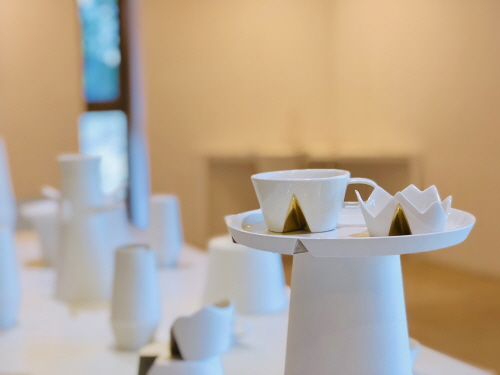 김혜림 작가의 여덟 번째 개인전 〈구석이 씨리즈: 뾰족한 식탁〉이 지난 5월 3일부터 14일까지 12일간 안성 보나카바 스페이스 플러스 갤러리에서 열렸다. 이번 전시는 휴식 공간, 안식처를 의미하는 ‘카렌시아’를 주제로, 외면을 세모나게 도려낸 테이블웨어를 선보였다. 작가의 그릇들은 ‘의도된 불편함’을 컨셉으로 한 조형실용기로 제작했다. 도려진 면을 채운 다양한 색감은 결핍 속에서 내재된 인간의 욕망과 열정을, 전시장 구석에 설치된 세모난 테이블은 작가만의 ‘케렌시아’를 표현했다.