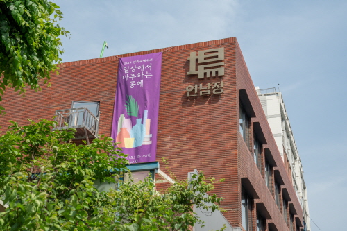 올해 공예주간에 맞춰 진행된 ‘2019 연희공예위크’. ‘일상에서 마주하는 공예’라는 주제로 전시, 클래스, 아트 마켓이 열렸다. ‘연희공예위크’는 해마다 가을에 열리는 ‘연희 걷다’의 스핀오프 프로그램으로 올해에는 연희동과 연남동의 경계에 위치한 ‘연남장’에서 모든 행사가 이뤄졌다. 전시 공간(지하 1층), 카페·레스토랑(1층), 코워킹스페이스(2층), 스튜디오(3층)를 갖춘 연남장은 ‘창작자들을 위한 로컬라운지’라고 정의할 수 있다. 여러 분야의 창작자들이 모여 각자의 일을 하면서 서로 영감을 주고받는 장莊이자 연희동과 연남동을 기반으로 하는 물건과 콘텐츠를 만날 수 있는 장場이 되기도 한다. 오래된 유리 공장을 개조한 연남장은 공장이라는 공간의 거친 모습과 우리나라 80년대 즈음의 복고풍, 유럽의 세련된 카페 분위기를 동시에 느낄 수 있는 매력적인 공간이다. 밖의 풍경을 시원하게 담아내는 큰 창과 높은 천장이 인상적인 1층 카페 중앙에는 큰 테이블이 있어 공연이나 강연, 토크 프로그램이 열릴 때 무대로 사용되기도 한다. 지하는 다양한 분야의 전시는 물론 마켓 등의 행사를 열기에 좋은 공간이다. ‘2019 연희공예위크’의 메인 프로그램인 도자 전시도 공예위크 기간 내내 지하의 전시 공간에서 열렸다.