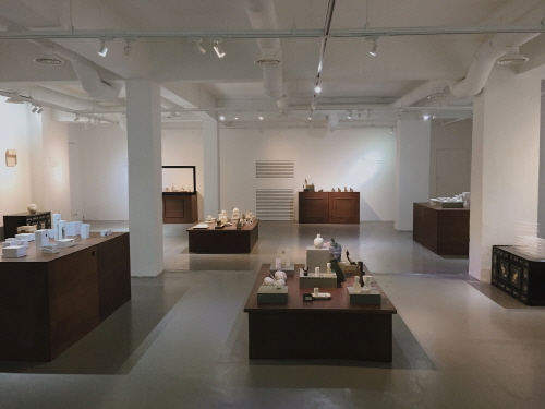 여러 공예 중에서 도예는 일상에서 가장 편하게, 가깝게 즐길 수 있는 분야다. 플라스틱 컵 대신 도자 머그를 사용하거나 좋아하는 도자기에 음식을 담아 먹음으로써 그 그릇을 만든 도예가의 손길과 미감을 느낄 수 있다. 이 전시에서는 이렇게 ‘일상과 밀접하고 라이프스타일에 많은 영향을 주는’ 도자 작품을 중점적으로 선보였다. 부부 도예가이면서 서로 다른 스타일의 작업을 하고 있는 민승기·연호경 작가를 중심으로 김영진, 문다운, 윤수진, 원유선, 이지현, 장완 등의 후배 도예가들이 전시에 참여했다. 쓰임에 집중한 실용적인 작업과 조형적인 작업을 두루 감상할 수 있었는데 감상자의 입장에서는 무엇보다 다른 전시에서 많이 접하지 못했던 젊은 도예가들의 참신한 작업을 만날 수 있어 흥미로웠다. ‘2019 연희공예위크’를 기획하고 진행한 어반플레이의 담당 매니저는 ‘선후배 도예가가 함께 선보이는’ 전시에 대해 “선후배의 작품이 어울리며 서로에게 긍정적인 영향을 줄 수 있는 전시를 선보이고 싶었습니다. 후배 작가들에게는 선배 작가들과 함께 전시를 준비하며 소통할 수 있는 시간이 되기를 바랐고 관람객들이 도예와 더 넓게 소통할 수 있는 장이 되었으면 합니다”라고 말했다. 단지 여러 스타일의 작품을 소개하는 데에 머문 것이 아니라 전시가 이뤄지는 과정과 작가들간의 관계, 그리고 작가들과 관람객들의 관계를 염두에 둔 전시다. 전시장 입구부터 벽을 따라 각 작가의 작품이 전시되고 중앙에는 작가들의 작품이 서로 잘 어우러지게 모여 있어 작품을 다양한 각도에서 감상할 수 있었다.