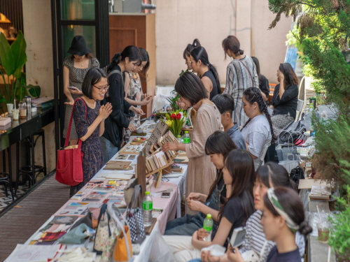 전시 중간에 하루는 전시와 연계된 도예 클래스가 진행되었다. 김영진, 문다운, 이지현 작가가 진행한 도예 클래스는 참가자 모집 공고를 낸 지 몇 시간만에 마감될 정도로 인기가 많았다. “일상에서 편하게 쓸 수 있는 ‘나만의 컵’을 만드는 클래스였어요. 작가님들의 인사와 기법 소개로 시작된 수업은 각자 만들 컵을 스케치하고 어떤 색을 사용할 건지 진지하게 고민한 뒤 흙을 만지는 작업으로 들어갔어요. 전시장에서 진행되었는데 몇몇 참가자들은 컵을 만들다가 영감을 얻기 위해 전시된 작품을 둘러보기도 했습니다”라고 그날의 수업 분위기에 대해 담당 매니저가 전해주었다. ‘2019 연희공예위크’ 마지막 날인 26일에는 1층 카페에서 아트 마켓이 열렸다. 아트 마켓에는 금속, 나무 등의 공예가와 핸드메이드 작가들이 판매자로 참여했고 카페에서 음료와 함께 먹을 수 있는 디저트도 판매되었다.