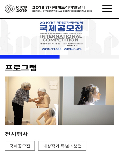도자 전문 온라인 플랫폼인 ‘KICB’이 다양한 서비스로 확대 운영한다. ‘KICB 온라인 플랫폼’은 지난해 <2019 경기세계도자비엔날레> 국제 공모전을 위해 구축된 것으로, 온라인 상에서 작가 이력과 작품 관람, 제작 퍼포먼스, 작품 설명 등을 사진 및 영상으로 볼 수 있다. 지난 국 제공모전 작품을 비롯해 40개국 세계 300명의 도예가의 대표작을 관람할 수 있는 온라인 갤러리, 2019국제공모전 현장작가로 선발된 42인의 온라인 전시관 운영 등 다양한 정보를 공유하게 된다. 또한 인 스타그램의 라이브 기능IGTV을 활용해 작품 설치 모습, 라이브 예술 행사를 영상으로 공개하고, 작가와의 대화 등을 실시간으로 나눌 계 획이다. 최 연 재단대표는 “온라인 플랫폼은 전 세계를 연결할 수 있는 온라인의 장점을 극대화시켜 누구나 도자예술을 즐길 수 있는 공간이 될 것”이라며 “해외 관람객과 도자예술에 대한 공감대를 형성하는 소 통의 장이 되기를 바란다”고 전했다.