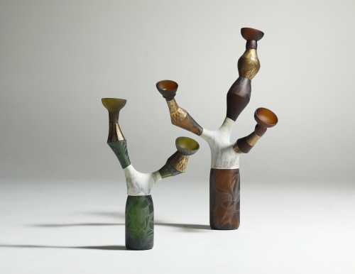 박선민 작가의 다섯 번째 개인전 <변형된 재발견 Modified Rediscovery>이 지난 1월 14일부터 23 일까지 열흘간 갤러리 완물에서 열렸다. 이번 전시 에서는 뒤엉킨 뿌리 덩어리에서 뻗어 나가는 가지 를 형상화한 연작 「뿌리Root series」을 선보였는데, 도자기법을 적극 끌어들여 구현한 병유리의 기술 적 표현의 정수를 보여준다. 폭우로 인해 파헤쳐진 땅속에서 뒤엉켜져 있는 뿌리로부터 출발해 인간 사회 속에서 뒤엉켜 연결된 관계를 비추는 작품은 폐유리의 국한된 한계를 도자유닛을 통해 확장하 며 그 의미를 구현했다.