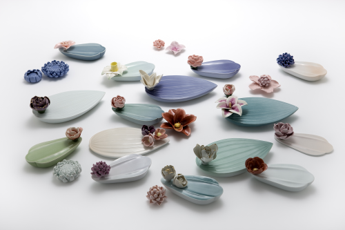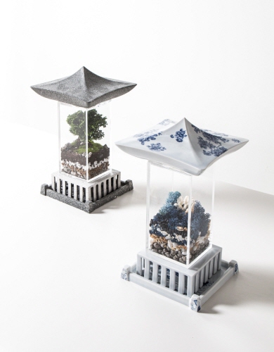 성신여자대학교 정지영 「화원花園」 15.5×8.5×6cm, 21.5×12.5×6cm│백자, 색소지, 슬립캐스팅, 핸드빌딩, 산화번조, 환원번조, 포슬린페인팅