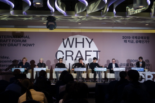 제2회 국제공예포럼 <왜 지금 공예인가?>이 문화체육관광부 주최, 한국공예·디자인문화진흥원 주관으로 12월 13일 인터콘티넨탈 코엑스 호텔 다이아몬드홀에서 개최됐다. ‘왜 지금 공예인가?’라는 주제는 국내외 공예계의 공론의 장을 마련하고, 향후 공예계의 미래비전을 제시하고자 선정됐다. 모더레이터로 정용진 국민대학교 교수가, 연사로 가이 솔터 런던크래프트위크 회장, 한정용 서울대학교 교수, 시모네 카레나 모토 엘라스티코 대표, 마루야마 토모미 도쿄예술대학 교수, 엘리자베스 애그로 필라델피아 뮤지엄 큐레이터, 구병준 피피에스 대표가 주제 강연을 진행했다.