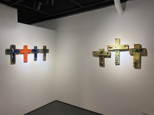 김인선 작가의 19번째 개인전 <더 크로스 인 더 시 티 The Cross in the city>가 열렸다. 도시city를 주 제로 작업해 온 작가는 도시를 가로지르는 거리와 풍경에서 십자가로 탄생한 상징적인 조형작품을 선보였다. 길과 길이 만나 교차되는 특징을 십자가로 접목한 그의 작품은 다중 시유와 삼벌 번조, 색 유리를 더한 독특한 기법으로 십자가라는 제한된 형태 안에서도 다양한 조형작품으로 선보였다. 작가는 ‘나의 십자가는 기독교인에게는 신앙의 표현이지만, 다채로운 조형표현을 통해 아름다운 리빙 오브제의 역할도 겸한다.’고 말했다.