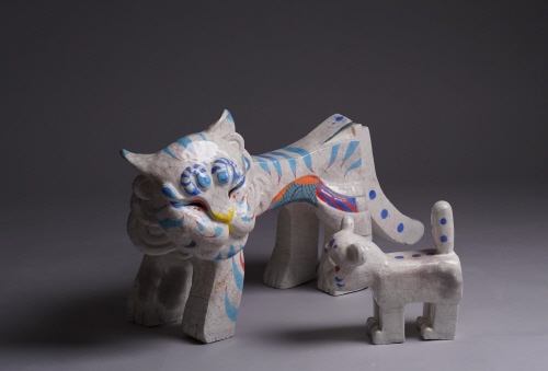 「동행同行」 120×H65cm│석기소지, 화장토, 투명유