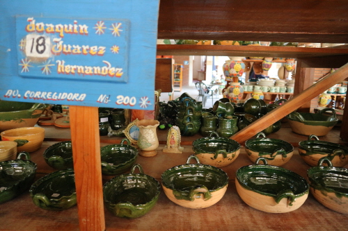 초록 도자기 마을이라고 불리는 아트솜파의 도기는 유약이 초록빛이어서 그렇게 불린다. ‘유약을 입힌 도자 기 Barro vidriado ’라고도 불리기도 하는데, 이는 멕시코 전통도자에서 유약을 사용하는 경우가 흔치 않기 때문에 구별해 부르는 것이다. 아트솜파의 초록도기를 보았을 때, 필자가 도예를 배운 스페인 안달루시아 전통 도자의 초록빛이 생각났다. 유약을 입히는 기술이 없던 이곳에 스페인 식민지 때 도자유약과 기술이 전파된 것이다.마을초입에는 백여개가 넘는 마을 공방 도자기를 진열ㆍ판매하는 마켓이 있다. 마켓에서 마음에 드는 도자기를 직접 구입하거나 공방을 방문할 수 있도록 안내하고 있어 홍보관 역할도 하는 곳이다. 아트 솜파의 동네 길에서는 공방마다 도자를 바깥 진열대에 꺼내놓고, 동네 이웃이 필요한 그릇을 익숙하게 구매하는 모습도 보였다. 그릇을 만드는 이웃에게 그릇이 필요한 이웃이 구매를 하는 일상적인 모습, 예전에는 참 흔했을 모습을 아직도 볼 수 있는 것이 반가웠다.