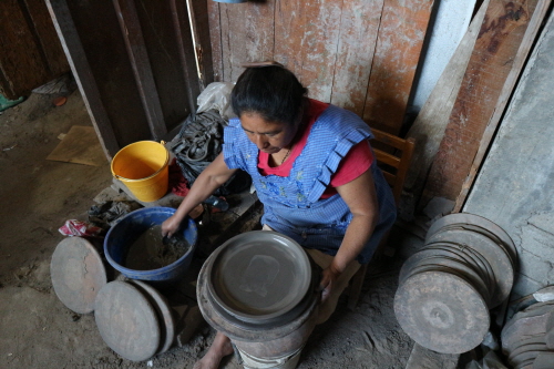 멕시코 와하카주의 도자기 마을들은 도자기 색으로 별칭이 불려 지기도 한다. 지난 달에 소개한 ‘검은 도자기 Barro negro ’라 불리는 산 바르톨로 코요테펙 San Bartolo Coyotepec 를 비롯해 ‘초록 도자기 Barro verde ’의 산타 마리아 아트솜파 Santa maria atzompa (이하 아트솜파), ‘붉은 도자기 Barro rojo로 알려진 산 마르코스 뜰라빠솔라 San Marcos Tlapazola (이하 뜰라빠솔라) 등 세 곳의 마을이 대표적이다. 초록 도자기와 붉은 도자기는 이 마을들의 여성 도예가를 만나는 여정을 통해 만나보았다.