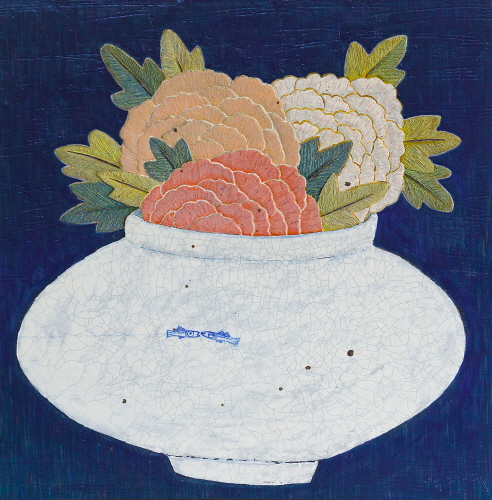 흙은 모든 생명의 근원이자 자연의 시작이다. 흙을 이용해 표현한 그림은 마치 스스로 살아있듯 숨 쉬며, 보는 이로 하여금 편안히 호흡하게 해준다. 작가는 동양적 사상인 무위자연을 기반으로 자유자재하고 자연스러운 동양의 선에 착안했다. 눈에 보이지 않지만 비가시적으로 존재하는 내면의 철학적 사고를 함축적인 선으로 표현한다. 그 표현의 확장으로 여러 번 채색을 올리는 중첩기법은 깊이감 있는 색감과 사유를 추구한다. 전통적인 형태와 덩어리감, 선 등을 회화적인 요소로 끌어들여 조형적 언어로 함축시키고 단순화시켰다. 작가의 작품을 보면 이러한 특징이 잘 드러나는데, 혼합토로 도판을 만든 뒤 겹겹이 흙을 올리면서도 사발, 달항아리, 물고기, 꽃과 잎 문양을 단순화하려고 노력한 것을 엿볼 수 있다.