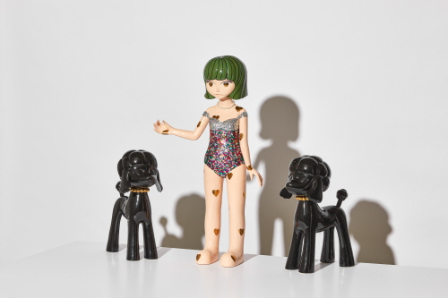 황재원의 <퐝스월드FFanG’s World>는 현실에 가까운 ‘얕은 상상세계’ 다. 작품에서 드러나는 ‘퐝’은 작가 본인의 표상이자 현대사회가 요구하는 ‘만능인간’을 상징한다. 화려한 옷을 입은 ‘퐝’과 그의 강아지는 현실세계가 요구하는 이상적 자아를 표현한다. 작가는 이상적 인간을 키우는 일에 집 중하는 현실을 ‘나르시시즘적 사회’라 말하며, 긍정적 나르시시즘이 만드는 삶의 질적 향상을 자기 성장의 과정에 빗대어 표현한다.