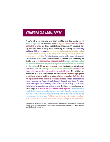 한편, 공예를 통해서 공예가는 사회적인 목소리를 낼 수 도 있다. 미국의 비평가 벳시 그리어Betsy Greer는 크래프트Craft와 액티비즘Activism을 합한 용어인 ‘크래 프티비즘Craftivism’이라는 용어를 창안했다. 2014년 출간된 그녀의 저서 『크래프티즘: 공예 예술과 액티비즘 Craftivism: the art of craft and activism』은 전방위에 걸친 사회적 메시지를 내는 공예 활동에 주목한다. 책에서 사례로 든 공예가들은 창조적인 작품을 만들어내는 생산자임과 동시에 사회운동가인 것이다. 벳시 그리어를 포함하여 13명의 활동가들은 ‘크래프티비즘 매니페스토’ 를 발표했다. 그 중 ‘당신의 공예는 당신의 목소리다Your Craft is your voice’라는 문장은 이들이 주장하는 크래프티비즘의 목적과 성격을 분명히 드러낸다.