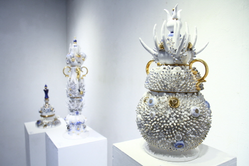 송효익 작가의 첫 번째 개인전 <인양>이 지난 8월 4일부터 14일까지 10일간 가회동 갤러리한옥에서 열렸다. 이번 전시는 장식적인 기형에 산호와 바다 생물에서 모티프를 얻은 유닛을 부착해 마치 바다에서 끌어올린 듯 표현한 작품을 선보였다. 작가는 소외된 것들에 대한 재조명을 통해 그들의 특별함을 인양한다는 의미를 담아 작업하며, 개인의 인정 욕구를 그의 작업에 투영한다.