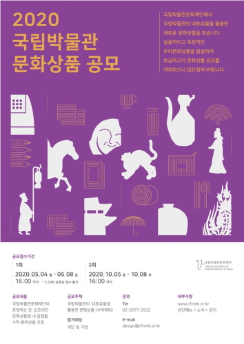 <2020 국립박물관 문화상품 공모>가 국립박물관의 문화상품점과 온라인숍(museumshop.or.kr)에서 판매할 문화상품 접수를 받는다. 이번 공모는 ‘국립박물관의 대표유물을 활용한 문화상품’을 주제로, 5월 4일 부터 8일까지 5일간 접수를 받는다. 공모대상은 공예품을 비롯해 문구사무·생활소품·패션잡화·어린이상품·액세서리·유물재현품 등 공모지원자가 저작권을 보장할 수 있으며 최종원산지가 대한민국인 문화상품이어야 한다. 또한 전기용품 및 생활용품 안전관리법·어린이제품 안전특별법 등 관련법에 의해 품질검사를 받아야 하는 경우는 지원 전에 절차를 완료해야 한다. 공모서류는 접수 기간 내 국립박물관문화재단 홈페이지에 서 다운 받은 양식을 작성해 전자우편으로 제출한 뒤, 시제품 혹은 완제품과 상품패키지, 상품설명서 등 국립중앙박물관으로 방문 혹은 택배로 접수가능하다. 심사 결과는 오는 5월 29일에 홈페이지와 합격자 개인 연락을 통해 발표할 예정이다. 선정된 문화상품은 국립박물관 내 문화상품점 입점, 국립중앙박물관에서의 홍보 매대 운영과 재단의 홍보채널을 통한 상품홍보가 지원된다.