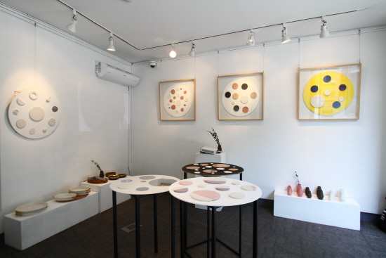 도예가 박소연의 두 번째 개인전<릴레이션 R:Relation>이 6월 3일부터 9일까지 인사동 토포하우스에서 열렸다. 작가는 색상과 질감을 강조한 생활자기와 ‘관계’에 관한 생각을 담은 벽면 오브제를 선보였다. 그는 백색 오브제를 중심으로 다양한 질감, 크기, 색상의 원형 도판을 다양한 구도로 배치했다. 본인이 경험한 관계의 다양성, 사람간의 관계에서 오는 긴장감과 편안함 등을 나열과 설치로 표현했다.