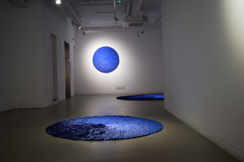 도예가 김자영의 첫 번째 개인전 -블루 홀Blue Hole-이 인사동 갤러리밈에서 열렸다. 작가는 이 번 전시에 벽면과 바닥을 활용한 설치작업 3점과 조형성을 가미한 스툴 6점을 선보였으며, 모든 작품은 파란 빛을 띄어 제목과 같이 파란 심연의 가운데에 서있는 느낌을 전달했다. 대형 설치 작품은 커다란 구멍을 연상하게 해, 괴로운 현실로부터 이상향으로 떠날 수 있는 길처럼 표현했다.