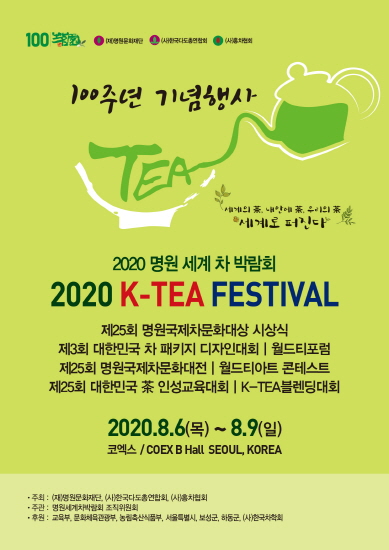 <제25회 명원세계차박람회>가 8월 6일 부터 8월 9일까지 4일간 코엑스에서 열린다. 명원세계차박람회조직위원회가 주관하고 (재)명원문화재단, (사)한국다도총연 합회, (사)홍차협회가 주최하는 이번 행사는 차 패키지 디자인, 명원 김미희 선생의 100주년 기념관, 월트티아트 콘테스트 등의 전시관이 마련된다. 또한 K-Tea블렌딩 대회, 세계차품평회, 차문화인 수상식, 전통다례 경연대회, 궁중생활 다례, 월드티포럼, 다례시연 등 다양한 문화행사를 구성하고, 하동군을 비롯해 보성군, 순천시, 구례군, 산청시 등 차 산업과 연관있는 관계기관 및 지방자치단체들이 참여할 예정이다.