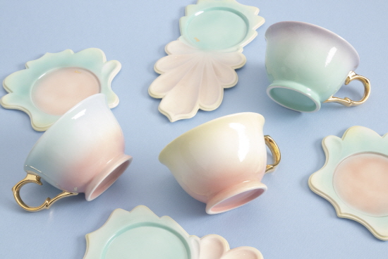 한세리의 ‘세리’와 세라믹의 ‘세라’를 합친 단어에요. 몽환적인 브랜드 이미지가 느껴지는 어감으로 마법 같은 세상으로 인도하려는 의도를 반영했습니다. 세리세라의 도자를 사용하는 순간에는 동화 속 주인공이 된 기분을 느끼게 하고 싶어요. 모든 제품은 노랑, 핑크, 민트색 등 파스텔 컬러를 그러데이션 기법으로 채색해 포근하고 몽롱한 이미지를 강조합니다.