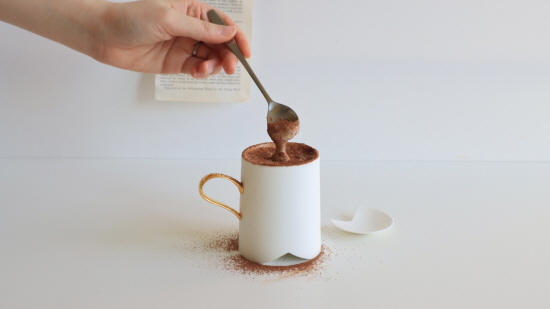 여성 의복에서 발견한 아름다운 선을 테이블웨어에 담았어요. ‘튤립 머그’는 서양의복의 전통적인 스커트 라인 중 하나인 ‘튤립 라인’에서 모티브를 얻었습니다. 치마 끝단의 중심이 깊게 파인 형태를 참고해 머그의 밑면에 공간 을 내어 공중에 떠 있는 것처럼 가벼운 이미지를 만들었 어요. 그 외에도 스커트가 찰랑거리는 흐름, 허리를 조이는 코르셋의 급격한 곡선 등 주로 서양 의복에서 발견한 선을 모티브로 시럽 저그, 접시 등의 테이블웨어를 디자인합니다.최근에는 꽃 가락지매듭, 동심결매듭 등 한국전통매듭에서 영감을 얻은 제품을 디자인해 관광문화상품으로서의 가능성도 모색하고 있어요.
