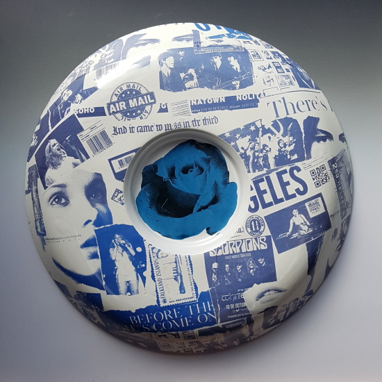 도예가이자 부산교육대학교 미술교육과 교수인 전광수의 <세라-콜라주Cera-Collage>전이 11월 18 일부터 24일까지 7일간 한새갤러리에서 열렸다. 이번 전시는 작가의 추억을 떠올리게 하는 옛 영화, 음악, 기차, 올드카 등의 이미지와 우표, 바코드 등을 접시에 담아 ‘세라믹-콜라주’ 연작을 선보였다. 그는 접시의 평면부를 캔버스 삼아, 상징성있는 사진과 기호를 실크스크린기법으로 전사해 이미지를 구성한다. 접시 위에 모인 다양한 도상은 ‘옛 것’ 이라는 공통점으로 혹자에게는 추억을, 다른 누군가에겐 새로운 시각적 경험을 전한다.