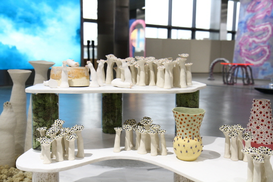 도자와 영상, 레진과 패브릭 등 다양한 소재의 작품을 선보인 <휴식의 오브제들 The Objects Of Rest> 전이 10월 27일부터 11월 15일까지 서울 무신사 테라스 라운지에서 열렸다. 이번 전시는 두 작가의 ‘휴식’에 대한 해석을 관람할 수 있던 자리다. 도예가 최나은은 ‘게으른 해변’을 테마로 산호초에서 모티브를 얻은 도자 조형과 화병, 소품을 설치해 바닷가에 털썩 주저앉은 순간을 재현한다. 미디어 아티스트 카야는 ‘꿈의 계곡’을 주제로, 화면에 올려놓은 투명 오브제를 통해 영상을 관람하게 함으로서 꿈속을 떠내려가는 듯 몽롱한 느낌을 입체적으로 전달했다.
