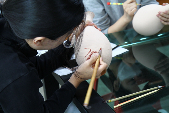 첫 시간이었던 <인화문 도장 제작>은 이 틀에 거쳐 진행됐다. 첫날 수업은 국화문, 운두문, 어문 등의 전통 문양 도장을 재현했으며, 둘째 날에는 응용과정으로 자신만의 도장을 제작해보는 방식으로 진행됐다. <상감, 인화 기법 실습>은 도판과 항아리 등에 직접 제작한 도장을 사용하고, 적합한 상감칼을 만들고 관리하는 법에 대해 다뤘다. 기물 형태와 곡률에 따라 도장을 찍는 법, 화장토의 농도를 조절하는 법 등 유용한 팁을 전수했다. <조화, 박지 기법 실습>에서는 화면에 문양을 배치하고 화장토를 자연스럽게 긁어내는 방법을 익혔다. <철화 기법 실습>에서는 철화안료의 배합비와 사용법을 배우고 먹으로 필체를 연습한 후 기면에 적용했다. 마지막으로 <상감, 인화 심화 과정>에서는 상감, 인화를 비롯해 그동안 배운 기법을 활용하는 방식으로 진행됐다.