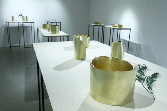 금속공예가 윤이랑의 두 번째 개인전 -바운싱 바운더리Bouncing Boundary-가 지난 12월 16일부터 28일까지 갤러리밈에서 열렸다. 이번 전시는 금 속판을 망치로 두드려 형태를 만드는 단조 기법으 로 제작한 금속 기器 작품을 선보인다. 윤이랑 작가는 벽, 전, 바닥 등 기물의 공간을 구성하는 ‘경계면’ 에 집중한다. 전을 엇갈려 붙이거나 맞닿은 면에 곡률을 더하는 등 경계면에 변화를 주고 옻으로 색을 칠하는 등 전과 벽을 강조해 작품 내에서 주인공의 역할을 부여한다.