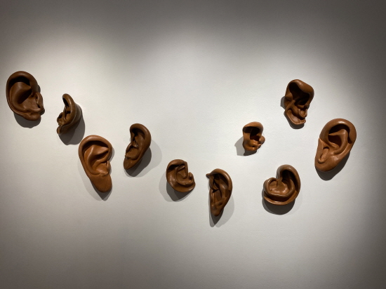 이번 엔시카 연례 전시2021 NCECA Annual는 독립 큐레이터이자 연구원인 샤넌 스트래튼Shannon Rae Stratton이 기획을 맡았고, 코로나19 팬데믹으로 인한 검역 및 사회적 거리 두기 조치로 생긴 유대 해체에 대한 우려 섞인 영향을 제시하는 데에 전시의 초점을 맞췄다. 아나 잉글랜드Ana England는 주로 사람이 다른 생명체 들과 어떻게 전략을 공유하는지에 대해 고찰하는 유대감 Kinship에 관한 작업을 해왔다. 특히 이번 전시에서는 왁스가 덧입혀진 10개의 영장류의 귀를 형상한 테라코 타 「작업 듣다: Listen」를 선보였다. 이 작업은 다른 사람 들의 의견과 걱정에 마치 귀머거리가 된 것처럼 살아가 는 현시대의 모든 인간과 영장류의 연결고리를 찾아, 서 로의 목소리를 들을 수 있도록 장려한다. “경청하는 행동 은 존중과 연민, 평화로운 공존을 가져올 수 있다”고 작 가는 말한다.