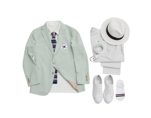 는 기능성 원단을 사용해 구김을 최소화했다. 남성 선수에게는 태극의 붉은 색과 푸른색을 따온 스트라이프 넥타이를, 여성 선수에게는 태극의 컬러에서 모티브를 따온 스카프를 제안했다. 국가대표 선수단이 개/폐회식에 착용하는 정장 단복은 코오롱FnC의 남성복 브랜드 ‘캠브리지 멤버스’에서 제작했다. 이상우 브랜드 매니저는 “세계인의 축제인 올림픽에서 우리나라의 아름다움과 대한민국의 정체성을 알리기 위해 디자인에 심혈을 기울였다. 브랜드가 가진 정장에서의 기술력을 이번 올림픽 단복으로 풀어낼 수 있어서 영광이다.”고 전했다.