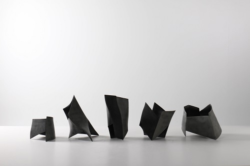 이송암 작가는 자연스럽게 흘러내린 유약의 흔적들 이 만든 패턴이나 한 곳에 맺혀서 만들어진 결정들, 또는 고르게 입혀져 보여지는 잔상들을 통해 흑자 가 단순히 검은 색만 가진 것이 아님을 보여준다. 비 정형 형태가 주는 조형미와 모래가 섞인 독특한 질 감은 흑자가 가진 색의 스펙트럼을 더욱 다채롭게 느낄 수 있게 한다. 작가가 의도하여 가마 속에서 한 번 더 변화시킨 유약의 아름다운 색감을 선보인다.