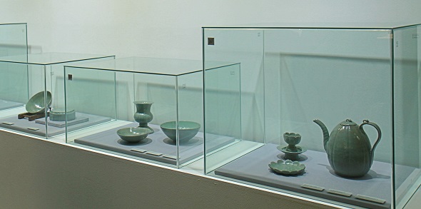 전시된 고려청자의 종류는 매우 다양한데 매병, 병, 호리 병, 대접, 화장 용기, 향완, 연적, 향로, 벼루, 반지, 향꽂이, 장고, 의자, 매화틀, 주전자, 받침잔 등이고 고려청자 의 모든 제작기법을 확인할 수 있는 유물들이 즐비하다. 순청자를 비롯하여 음양각청자, 상감청자, 철화퇴화청자, 고려백자, 철채청자, 연리문청자, 동화청자 등 전시중 인 유물은 모두 중요한 작품들이지만, 이 중에서 학술적, 예술적으로 매우 중요한 유물 몇 점을 소개하고자 한다.