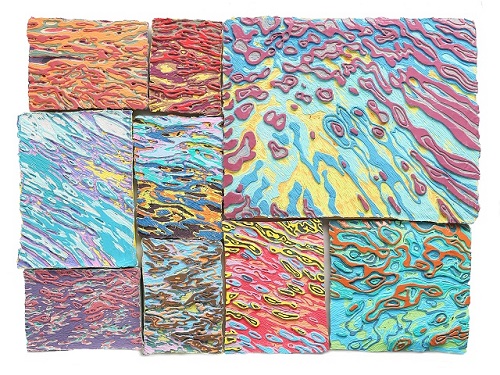 김민지의 작업은 우직하고 차분하게 쌓인 시간들을 작품으로 형상화 한다. 그의 작업에서는 고고학의 의미를 엿볼 수 있다. 바람과 물과 태양과 사람이 스 친 자리에는 그 흔적이 남을 수밖에 없기에 사람의 얼굴과도 같은 자연의 층들을 발굴해 역사와 기억 을 마주하게 한다. -전시서문 중-