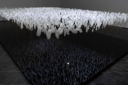 전시의 주요 작품인 「Dream Time」 (2021)과 「프로토타입-참을 수 없는 존재 의 가벼움」(2021)은 호주 원주민 여성들이 작가를 가족의 일원으로 포용하며 보여준 ‘여성들의 춤Women’s Dance’과 신성한 사물 ‘깃털’에서 영감을 얻었다. 1층 도입부에 위치한 퍼포먼스 영상 「Dream Time」 에서 두 무용수는 원주민 음악을 연상케 하는 타악기의 단순하고 반복적인 음악리듬에 맞춰 몸에 새겨진 원초적 감각과 감정을 표현한다. 손끝에서 시작된 미세한 움직임은 점차 신체로 확장되고 원형의 공간을 장악하며 호주사막의 야생동물과 식물을 표현하고 있다. 어머니와 딸 같은 두 무용수의 관계설정은 여성의 삶과 구전으로 이어온 예술적 전통, 세대 간의 기억을 의미한다.
