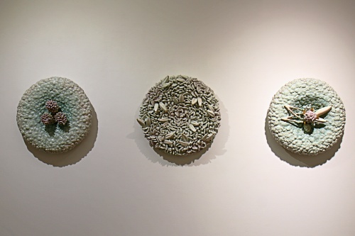 바다생명체에서 영감을 얻어 작업하는 황지혜 작가가 12월8일부터 12월 14 일까지 <해림>전을 개최했다. 바다 숲을 의미하는 <해림>은 작가가 만든 개체들이 모여 하나의 공동체를 이루길 바라는 마음에서 시작되 었다. 오랜 기간 동일한 주제로 작업한 작가는 바다생명체를 그대로 재 현하기보다 생략 혹은 결합, 왜곡이나 강조를 통해 재탄생시킨다. 작가 는 신비롭고 몽환적인 생명체의 표현을 위해 다양한 유약 실험을 진행 한다. 직접 제조한 유약을 중첩하여 시유하거나, 여러 번의 번조과정을 거쳐 소성 전에는 예측할 수 없는 우연성을 유도한다. 최근에는 접시나 도판에 생명체의 형상을 부착하여 작업한다. 벽면에 걸린 도판의 평평 한 형태는 안정감을 주고, 부조물의 역동성을 강조한다. 작가는 백금을 사용하거나 어두운 색상의 유약을 활용하는 작업도 계획 중이다.