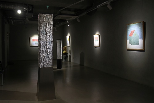 우리의 삶은 이상향과 반이상향 사이에 존재하는 공간이라는 주제로 고우정, 류호식 작가의 이인전이 12월 8일부터 12월 27일까지 갤러리밈에서 열렸다. 고우정 작가는 색의 대비와 흙의 질감, 굵게 쓰인 글자들을 통해 자신의 심리상태를 드러낸다. 해외에서 작업하며 한국인으로서의 정체성을 확립하고 자신을 이해하는 과정을 두상의 형태와 보색을 활용한 색의 대비, ‘I NEED YOU’와 같은 문구를 적어 직관적으로 표현했다. 고우 정 작가는 자신의 심리상태를 작품을 통해 자유롭게 표현한다는 점이 이상향을 주제로 작업하는 류호식 작가의 작품관과 동일하다는 생각에서 이번 전시를 기획했다. 류호식 작가는 변하지 않는 자연을 자신의 이상향으로 바라본다. 하늘이나 나무, 흙과 같은 자연은 서로 섞여있지 않지만 조화를 이루고, 이는 현대사회에서 각자의 개성을 가진 사람들이 함께 살아가는 모습과 닮아있다고 느꼈다. 작가는 이를 전통 산수화의 구도법 중 하나인 삼원법에서 영감을 얻어 표현한다. 도판에 흙으로 그려진 그림 작업은 사람의 눈높이에서 바라보는 평원법(平遠法)을 통해 현실을 나타내고, 아래에서 위로 올려다보는 높은 설치물은 고원법(高遠法)으로 이상향을 찾는 과정을 보여준다. 위에서 아래로 내려다보는 오브제는 심원법 (深遠法)을 적용하여 눈앞에 펼쳐진 이상향을 드러낸다. 작가는 작품을 통해 보여진 일상이 관람객의 일상으로 이어져 이상이 공존하는 삶을 소망한다 전했다.