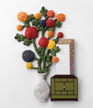 책가도를 주제로 테라코타 부조작업을 하는 이지숙 작가가 1월28일부 터 2월9일까지 아트버스카프에서 개인전 <부귀영화-꽃>을 개최한다. 작가는 2011년부터 책가도를 주제로 옛 선비들의 책과 사물을 정밀하 게 관찰해 평면과 입체가 어우러진 부조형태로 재현한다. 그는 카잔차 키스의 소설 그리스인 조르바를 읽으며 ‘행복이란 것은 포도주 한 잔, 밤 한 알, 허름한 화덕, 바다 소리처럼 참으로 단순하고 소박한 것이며, 필요한 건 그 뿐’이라는 구절을 통해, 작업에 더욱 집중하게 되었다. 항 아리에 하나 둘 꽂히는 꽃가지를 바라보며 코로나 시대의 혼란을 소박 한 일상의 아름다움으로 전환하길 바란다고 전했다.