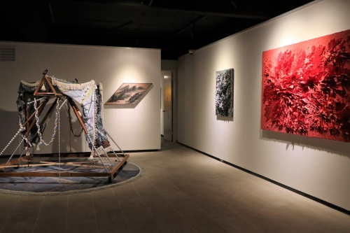 김지아나 도예 작가와 민성홍 설치작가의 2인전 <중첩된 표면Overlapped Surfaces>이 1월 5일부터 2월 18 일까지 45일간 리나갤러리에서 열렸다. 이번 전시는 다른 분야의 두 작가가 2차원과 3차원을 넘나들며 공존 의 장면을 보여주는 작품 17점을 선보였다. 전시는 두 개 층으로 이어지는 동선에 작품을 교차로 배치해 구성 했다. 얇은 포슬린 조각들을 쌓아 캔버스를 채우는 작업을 이어온 김지아나 작가는 반복과 순환의 질서로 인 간관계를 표현하고, 민성홍 작가는 버려진 가구나 생활집기 등 일상적 사물을 재구조화하는 과정에서 급변하 는 시대의 현대인의 정체성 탐구를 전달한다.