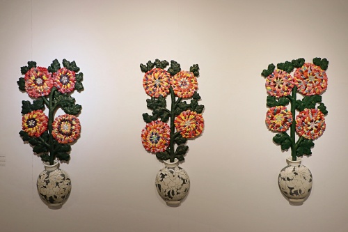 「부귀영화-꽃」 123×54×7cm, 119×53×7cm, 94×64×7cm | 테라코타 위에 아크릴 채색 | 2021