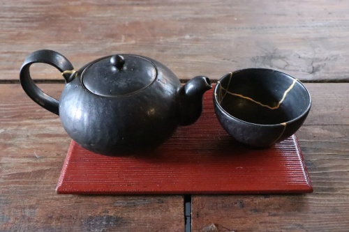 김수미 작가가 킨츠기 기법으로 수리한 이송암 작가의 차도구 세트